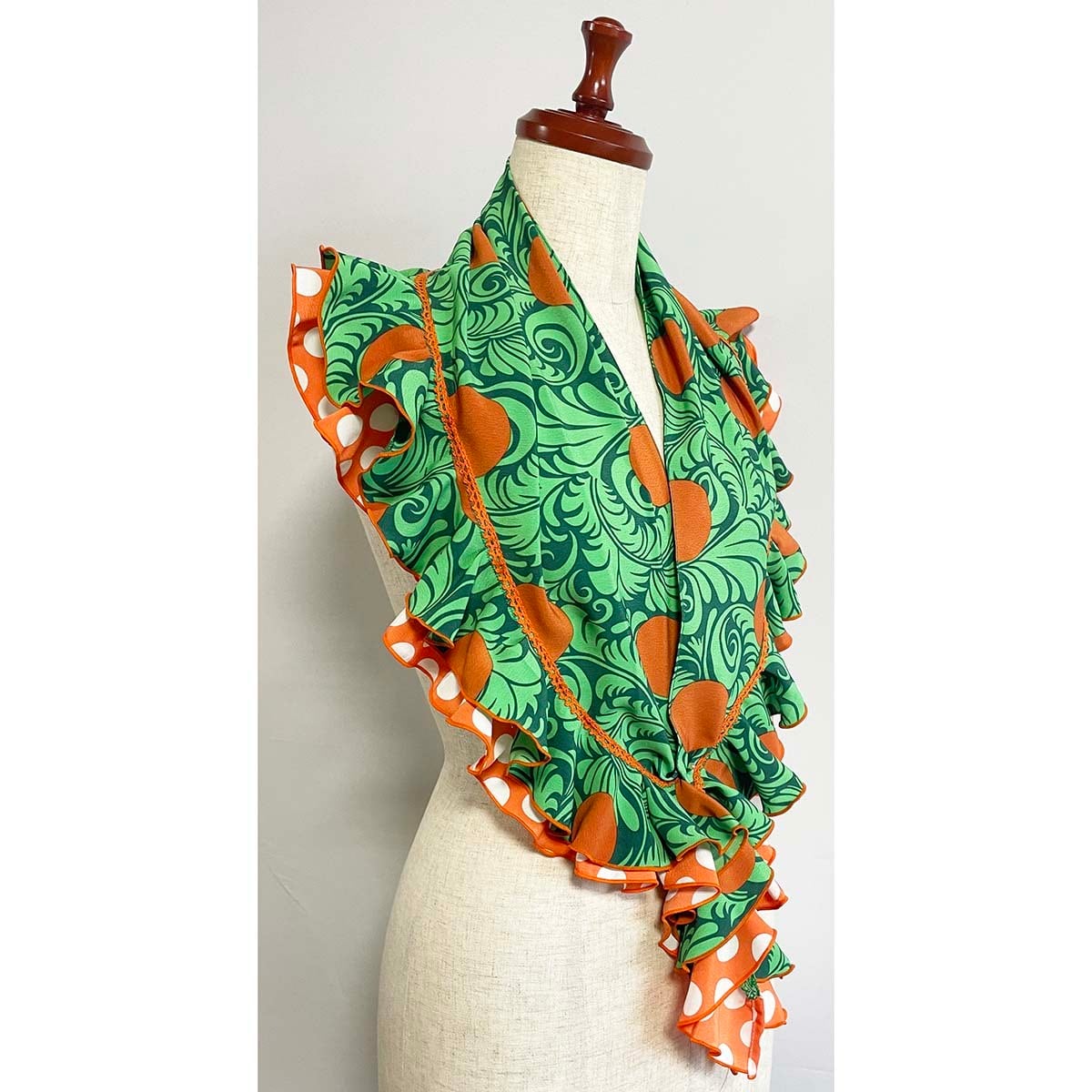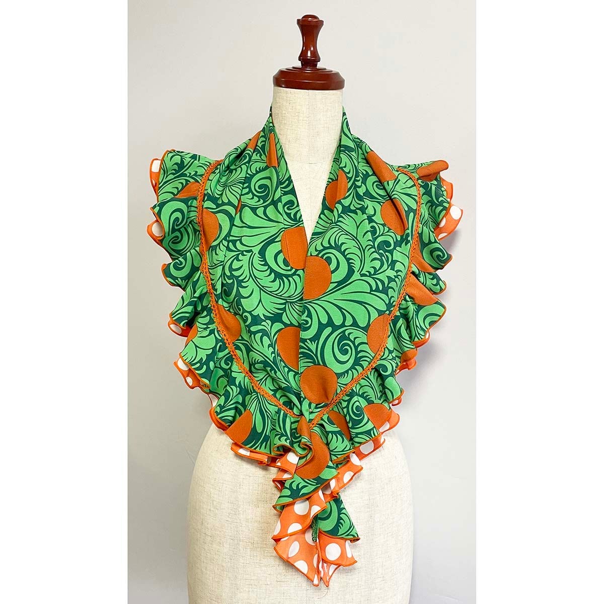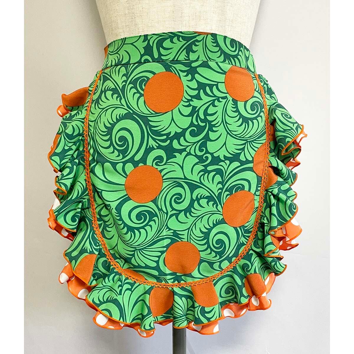 緑とオレンジの舞台映えするコンビのセットです。エプロンは小振りタイプです。